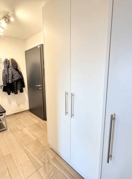Hall d’entrée avec armoires murales et colonne lave-linge/sèche-linge