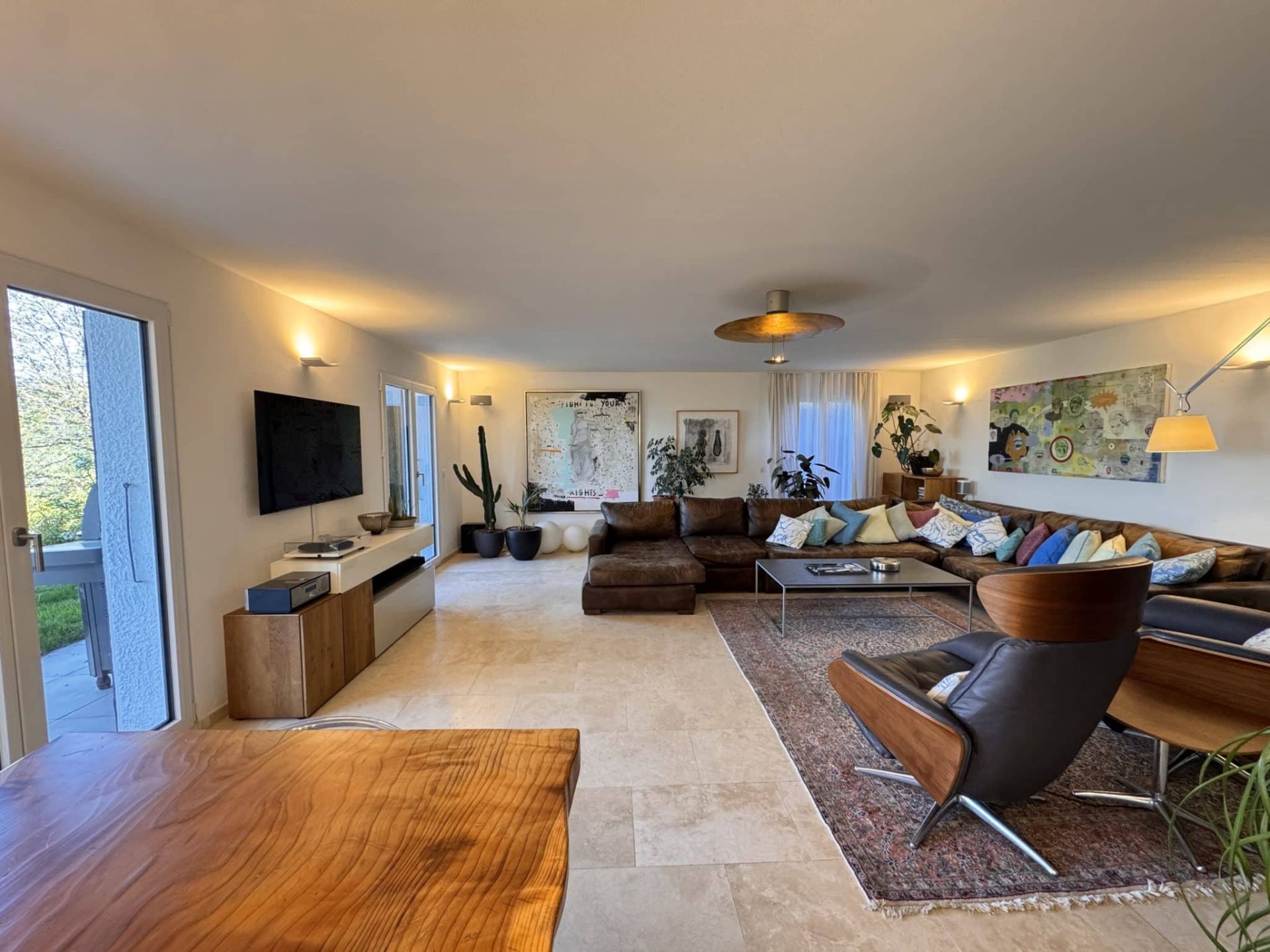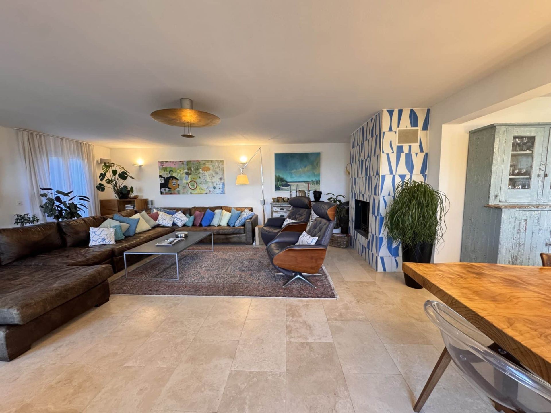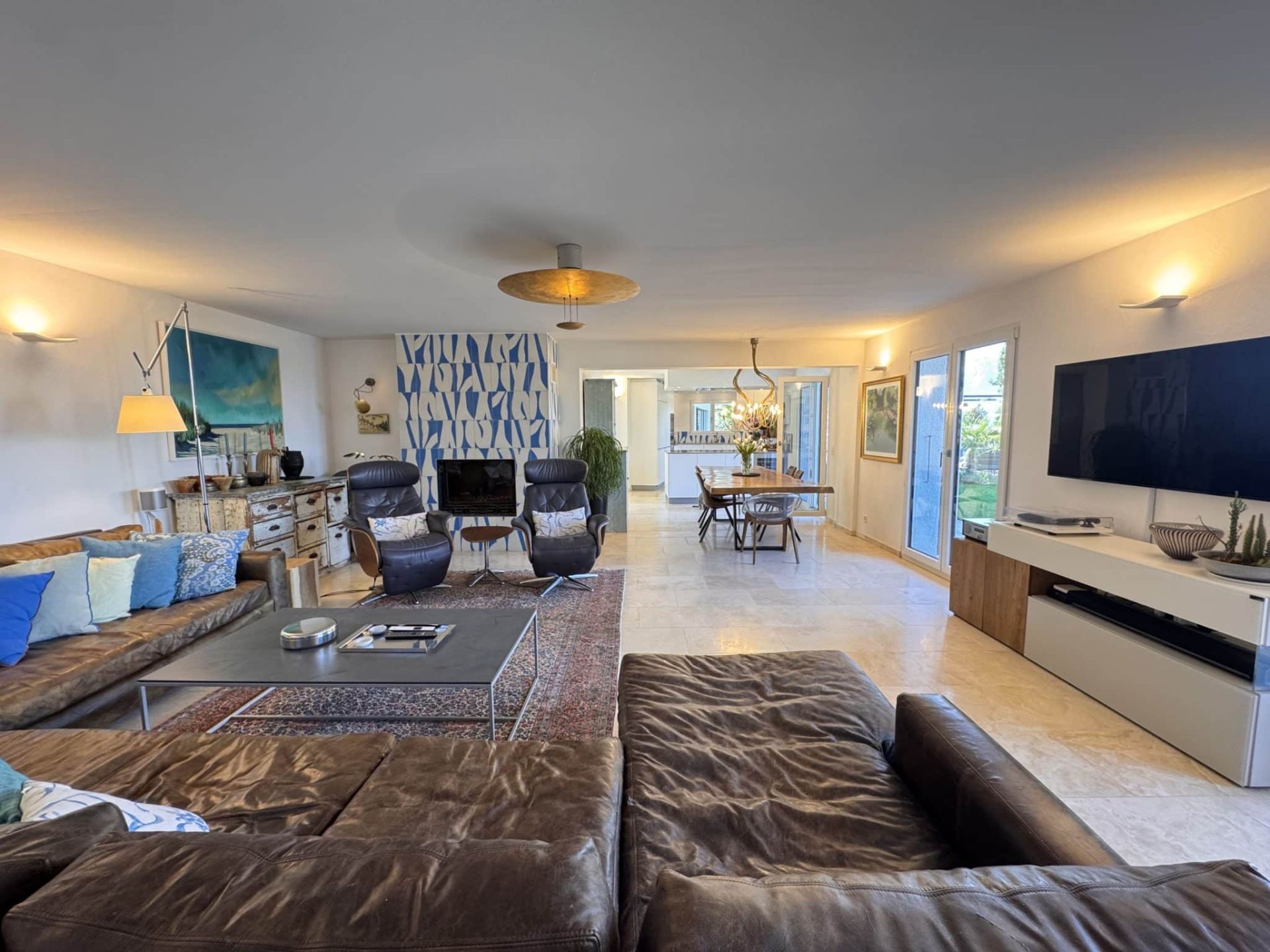 • Vaste séjour avec cheminée, offrant de beaux volumes et un accès direct aux extérieurs