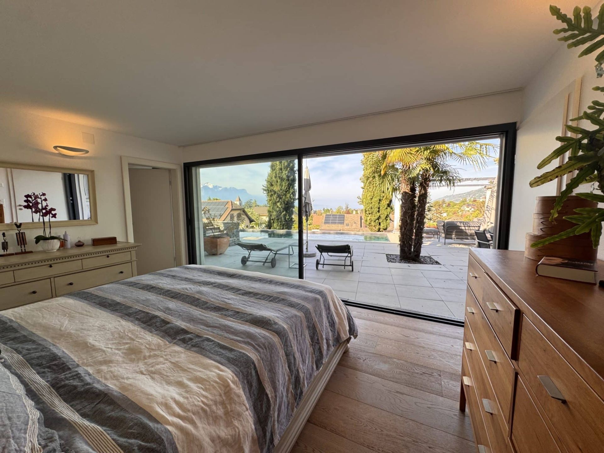 • Belle suite parentale avec dressing et salle de douche attenante, avec accès direct à la terrasse et à la piscine