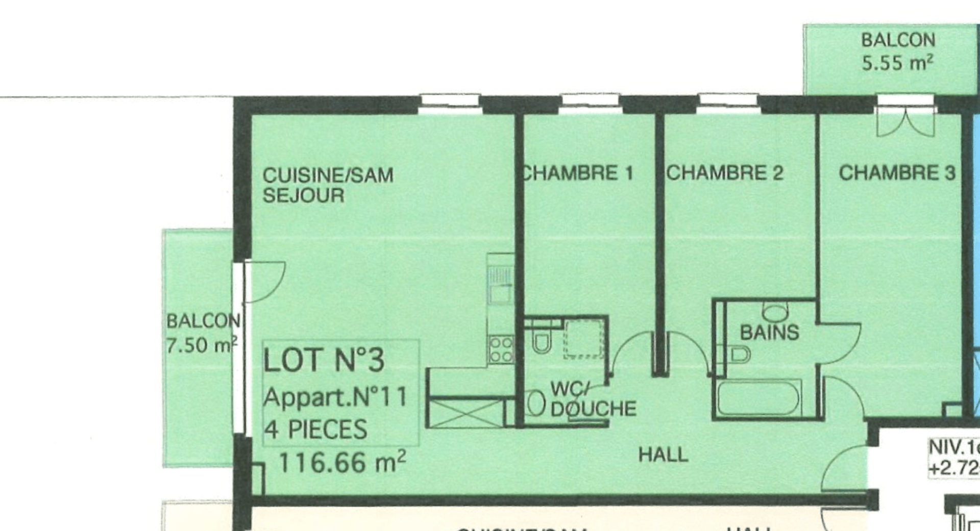 • Trois chambres, dont une avec salle de bain attenante