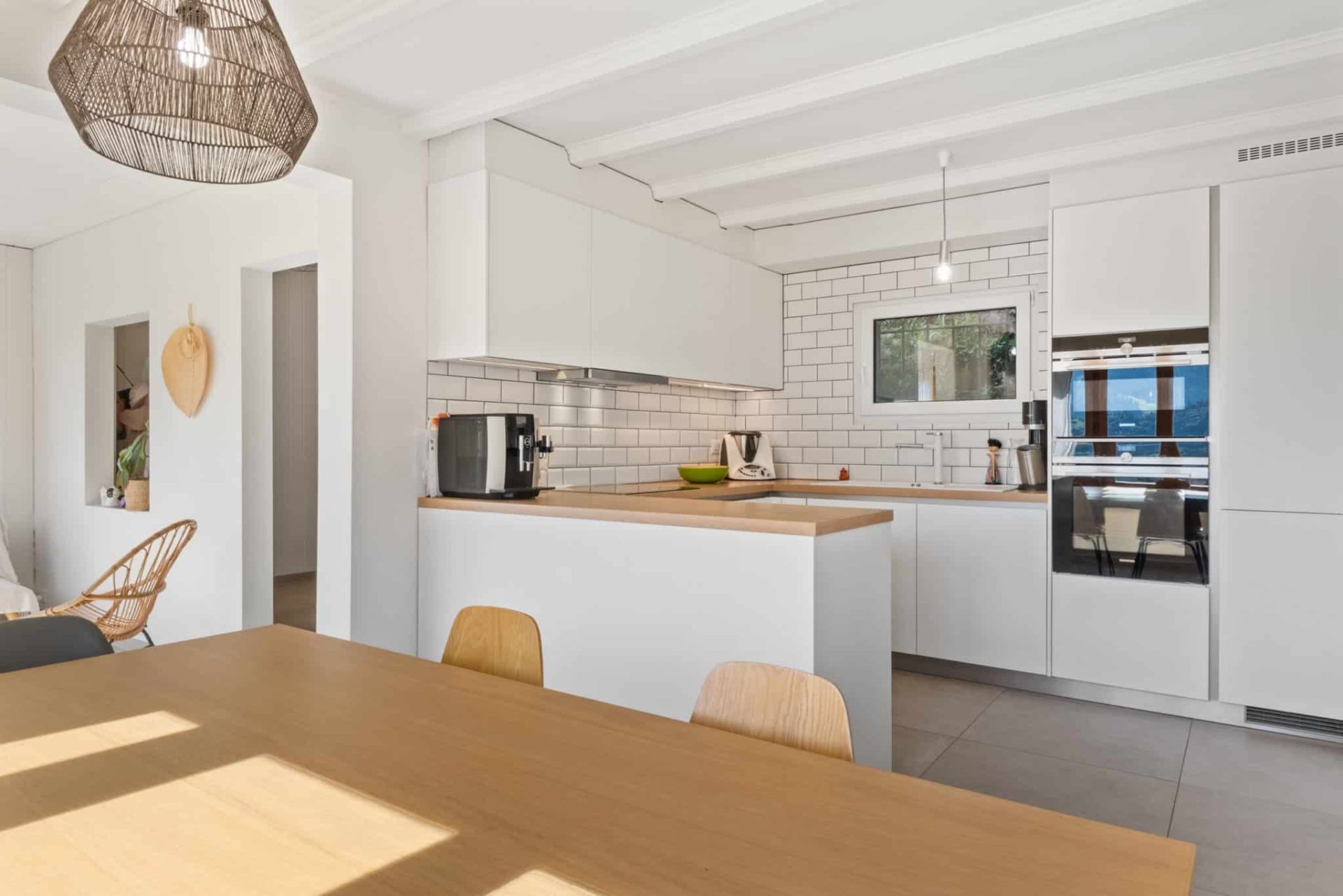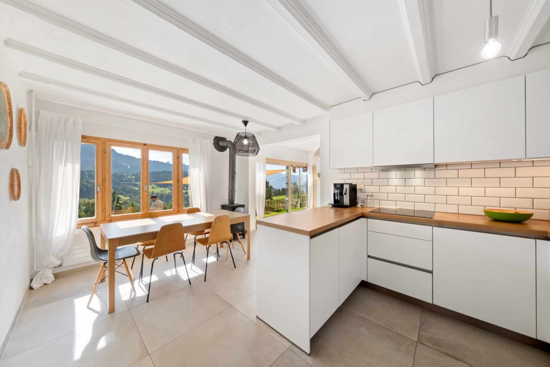 - Entrée et salle à manger lumineuses avec poêle